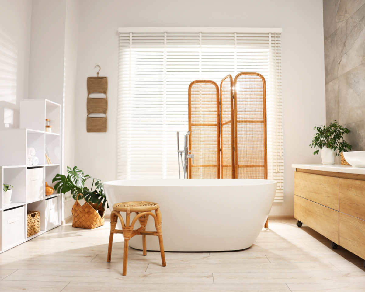 Window coverings in a bathroom with a bath are about more than privacy – they also protect against excessive sunlight and moisture. Here are a few practical options: