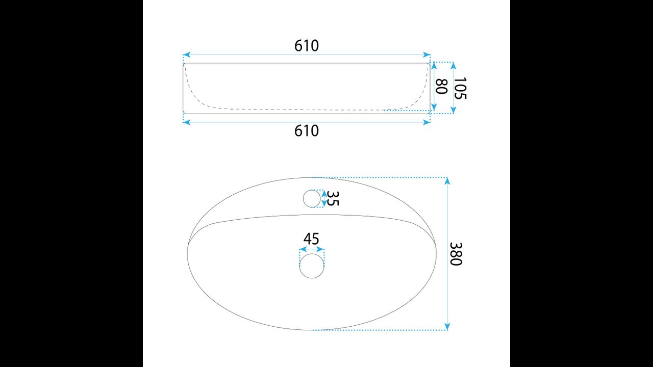 The basin features a shelf with a faucet hole, making it even more functional. Made of the highest quality sanitary ceramic, it is durable, resistant to damage, and easy to clean. Countertop installation allows for maximum use of bathroom space while creating an elegant, minimalist composition.