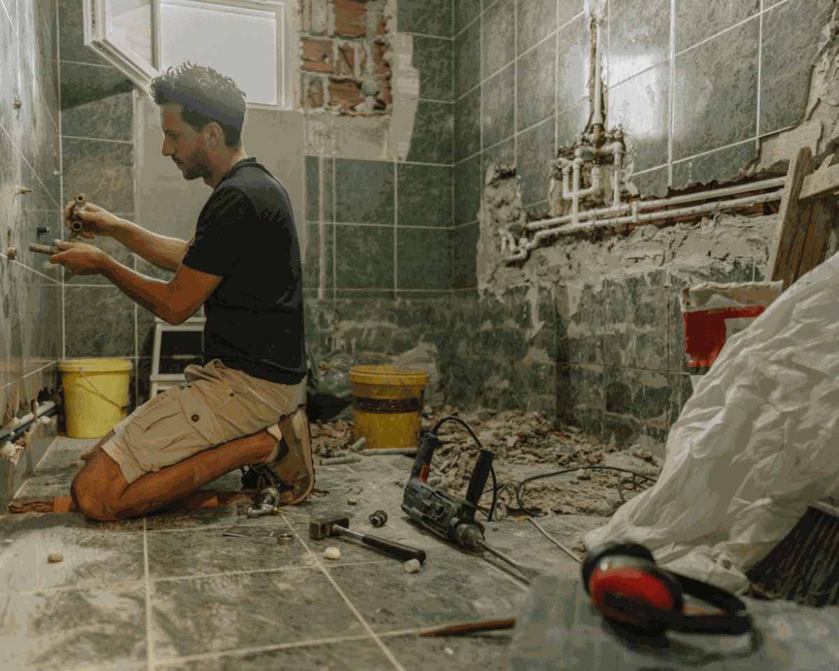 The first major expense is hiring a skip for renovation and construction waste. Depending on size, prices range from 400 to even 900 zł. On top of that, you need to add the work of tradespeople, who charge from 40 zł/m2 for removing tiles and preparing walls for new finishes. And if dismantling and installing a new system is involved, you should allow at least about 150 zł/mb.