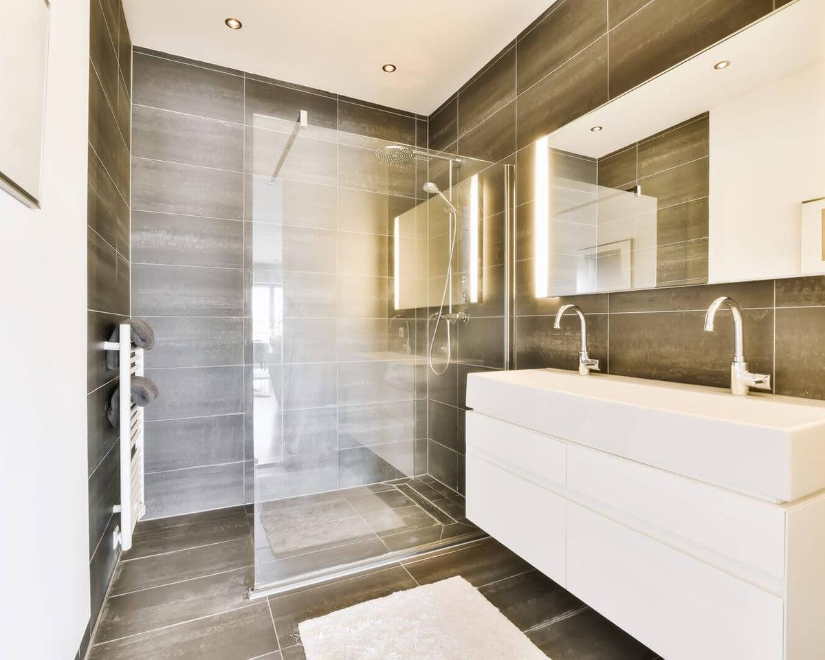 A walk-in shower combines ease of use with striking aesthetics. Don’t worry about the perceived difficulty of installing a linear drain within it. Opt for simpler single-fall solutions and stop worrying about how to form an envelope fall in such builds!