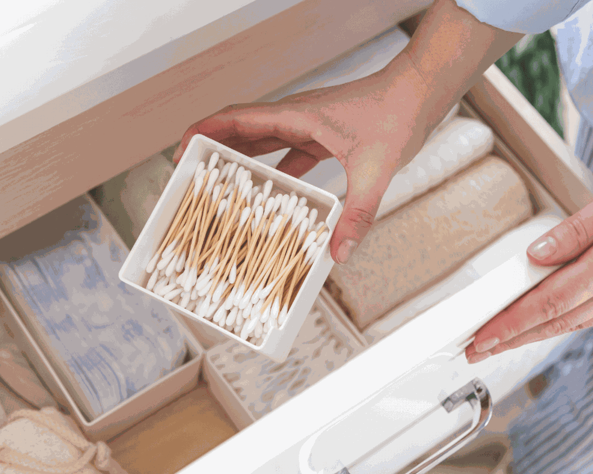 Organising a small bathroom isn’t the easiest task, especially when it comes to storage. A long bathroom worktop can make things easier, with room beneath for bathroom furniture in the form of cabinets. Such a set-up provides space for a washbasin while also letting you use the surface to set out your toiletries. So if you’re wondering how to store cosmetics in a small bathroom, this is a solution worth considering.
